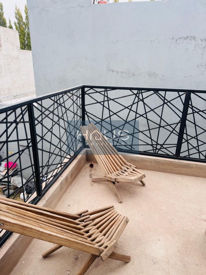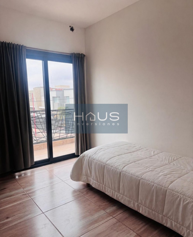 En planta alta, la propiedad ofrece dos dormitorios, un baño completo y un práctico espacio de escritorio que también puede adaptarse como dormitorio. Se destaca por su doble balcón, que aporta luz natural y vistas abiertas.